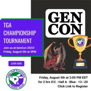 If you will be attending GenCon ’22, we are hosting a TGA Championship Cup Tournament! We’d love to have you join us Friday, August 5th beginning at 3PM. The tournament