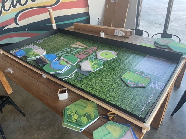 Complete game set plus 4′ x 8′ foldable topper and sturdy frame with custom TGA playing mat.*